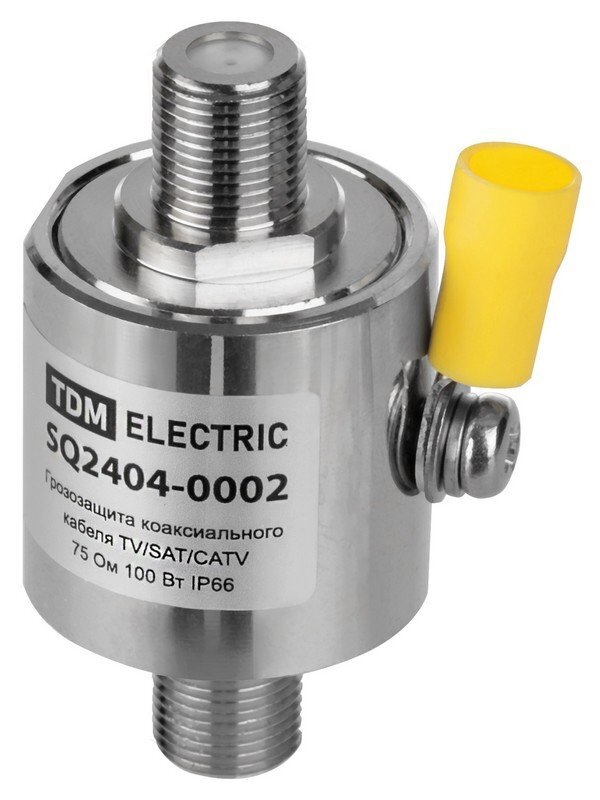 Грозозащита TDM ЕLECTRIC Грозозащита коакс кабеля TV/SAT/CATV, F-штекер/F-штекер, 75Ом, DC-3ГГц, 100Вт TDM (SQ2404-0002)