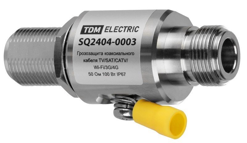 Грозозащита TDM ЕLECTRIC Грозозащита коакс кабеля TV/SAT/CATV/Wi-Fi/3G/4G,N-гнездо/N-штекер, 50Ом, DC-3ГГц, 200В TDM (SQ2404-0003)