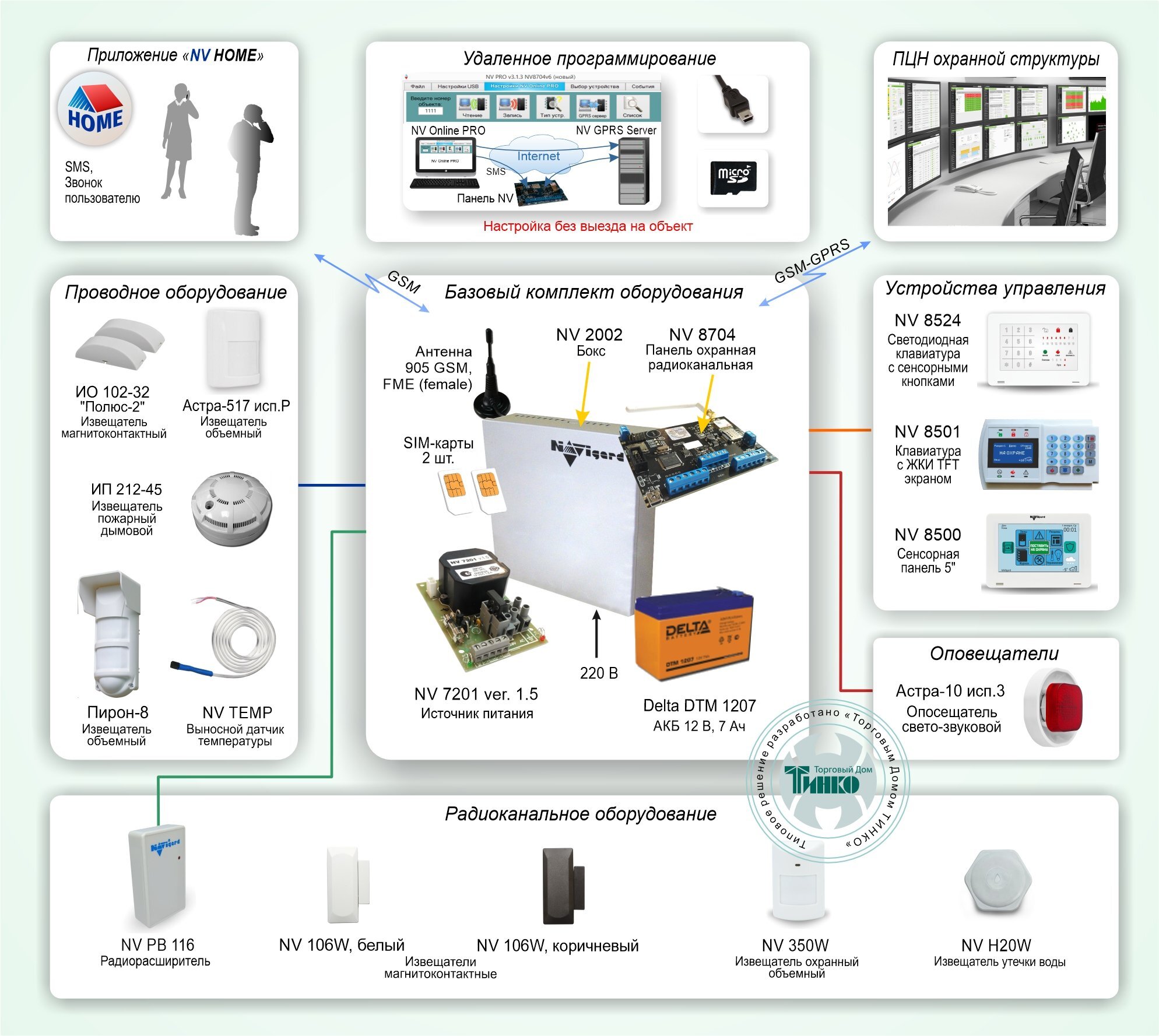 GSM-система охранно-пожарного мониторинга на базе оборудования ТМ "NAVIgard" NAVIgard Типовое решение: ОПС-084