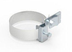 Хомут на металлические трубы применяется для крепления круглого (8-10мм) проводника к водосточной трубе. Способ крепления проводника - болтовой зажим, материал - нержавеющая сталь. Бандажная лента позволяет отрегулировать диапазон зажима в зависимости от диаметра трубы.