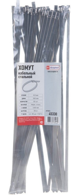 Хомут стальной Экопласт Хомут стальной 4,6х300 (50шт) (45330)