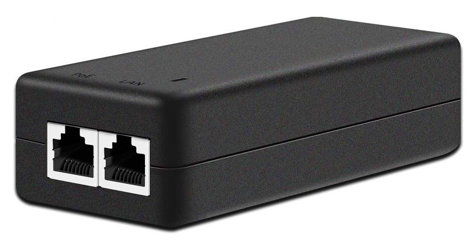 Инжектор PoE гигабитный IEEE 802.3af, расстояние передачи данных до 100 м; вход: AC 220В, выход: DC 48В, 15 Вт; 1xRJ-45 Data 10/100/1000 Мбит/с, 1xRJ-45 PoE 10/100/1000 Мбит/с IEEE 802.3af; грозозащита до 4 кВ; AC 110-240В, -10...+55°C, 115х50х31 мм.