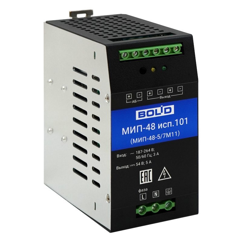 Источник питания МИП-48 исп.101 (МИП-48-5/7М11) предназначен для питания оборудования промышленной и бытовой автоматики, измерительного оборудования, телекоммуникационных систем, систем контроля доступа и видеонаблюдения, требующих резервного электропитания с напряжением 48 В постоянного тока. МИП предназначен для размещения в шкафах на DIN-рейку.