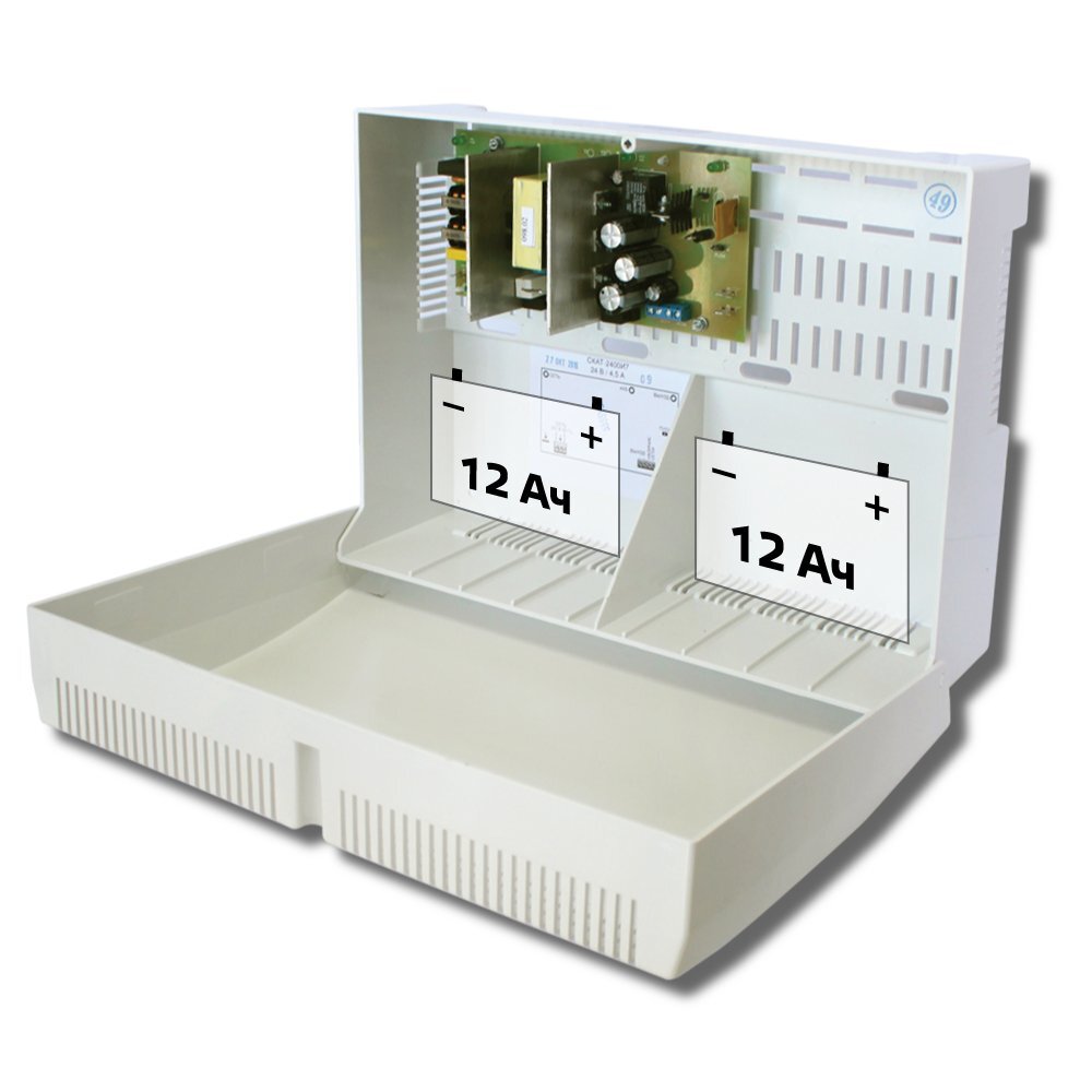 Источник питания «СКАТ 2400» предназначен для обеспечения бесперебойным питанием систем охранно-пожарной сигнализации, видеонаблюдения и других потребителей с номинальным напряжением 24 В постоянного тока.