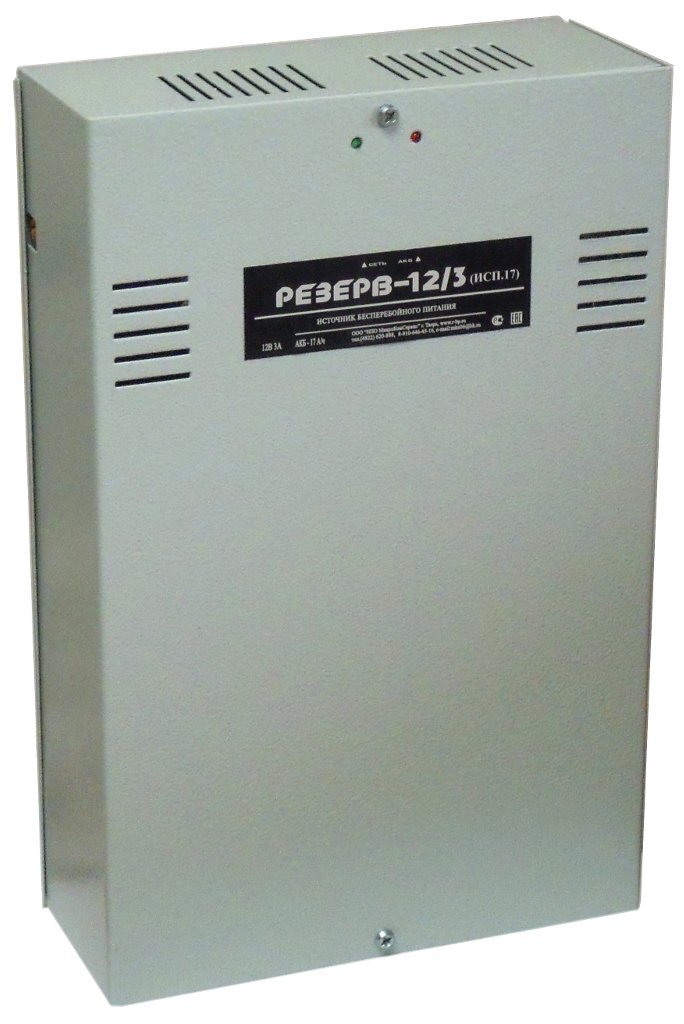 Источники питания резервированные «РЕЗЕРВ-12 исп.17)» предназначены для обеспечения бесперебойным электропитанием средств охранно-пожарной сигнализации, систем видеонаблюдения и других потребителей бытового и промышленного назначения номинальным напряжением 12В постоянного тока с возможностью длительного автономного режима работы.
