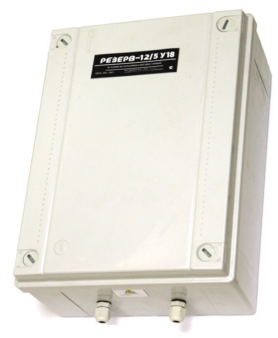 Резервированный источник питания, уличный, U-вх. перемен. 165...275 В, U-вых. пост. 13.4...14.0 В, I-ном. 5 А, I-макс 6 А, под аккумулятор 12 В 18 Ач; световая индикация режимов работы "Сеть", "АКБ"; выход "ОК" наличие сети 220 В, защита от короткого замыкания, защита аккумулятора от глубокого разряда, IP56, -40 до +40°С (с термостатом), габ. размеры 334х239х132 мм. В комплекте универсальное крепление на столб