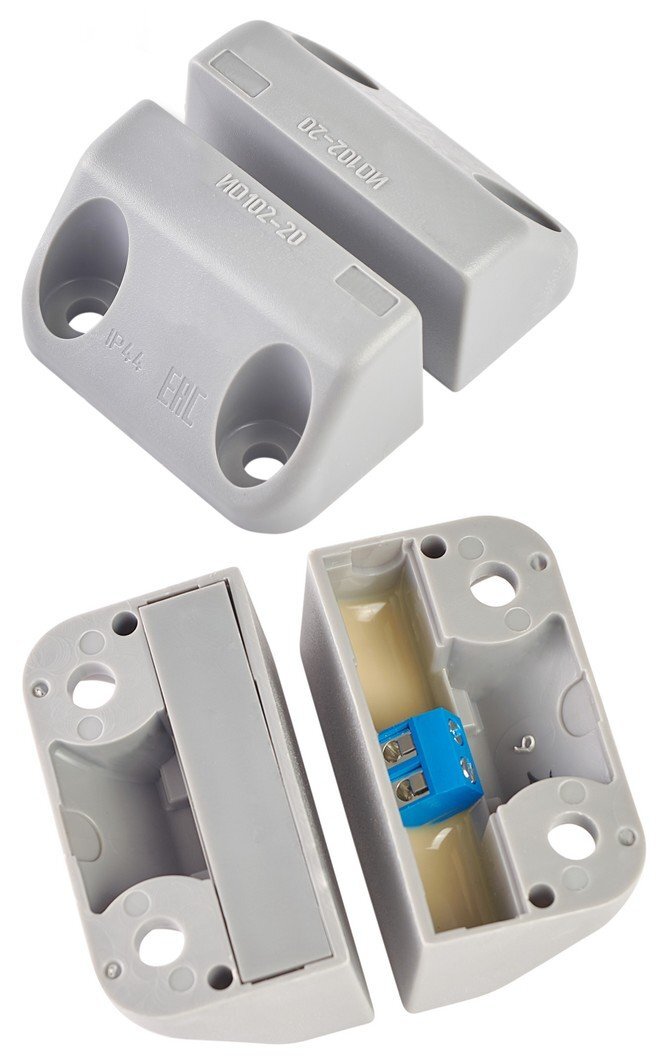 Конструктивно "С2000-АР1" (с контактами "Охрана", подключенными к геркону, и замкнутыми контактами "Блокировка") помещен в углубление корпуса "ИО 102-20" и залит эпоксидной смолой. ДПЛС подключается внутри извещателя к разъему.