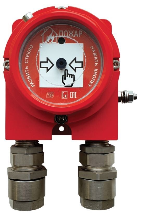 Извещатель пожарный ручной взрывозащищенный 1Ex db IIС T6 Gb; три схемы включения; U-пит.4...28 В, I-потр.50 мкА; светодиодная индикация; IP66/IP67, t-раб.-60...+70°С, 172x92x72 мм, 2.0 кг. В комплекте: штуцер для бронированного кабеля и металлорукава 12...13 мм (17...19 мм с дополнительным уплотнительным кольцом), заглушка.