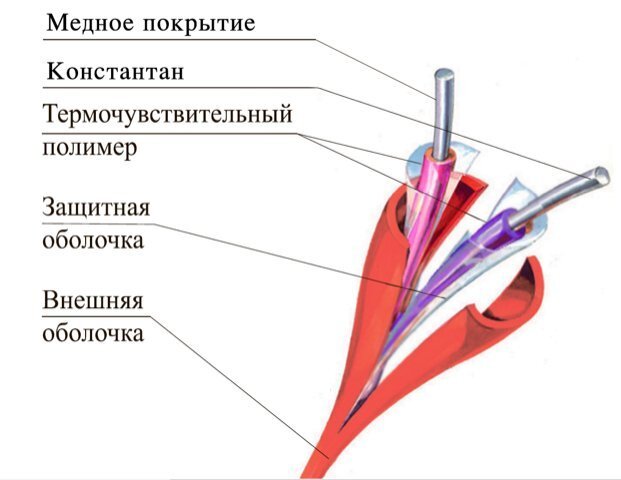 Термокабель предназначен для обнаружения возгораний, сопровождающихся повышением температуры.