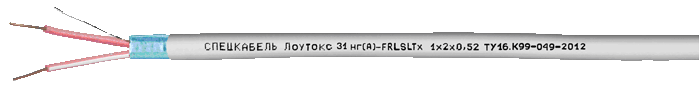Пары со сдвоенными параллельными однопроволочными диаметром 0,52 мм медными жилами с изоляцией из огнестойкой кремнийорганической резины и легко разделяемой перемычкой между ними, с общим экраном из алюмолавсановой ленты и с контактным проводником из медной луженой проволоки, в оболочке из ПВХ пластиката пониженной пожароопасности с низким дымо- и газовыделением с низким показателем токсичности продуктов горения белого цвета. Идентификация жил в паре – по продольному наплыву и цветной полосе на одной из изолированных жил.