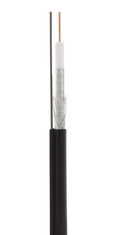 Кабель коаксиальный радиочастотный с тросом волновое сопротивление 75 Ом, со вспененной полиэтиленовой изоляцией в полиэтилен (PE) оболочке. Внутренний проводник стальная проволока плакированная медью ; Диаметр внутреннего проводника 1,63 мм; Диаметр по внутреннему диэлектрику 7,11 мм; Диэлектрик, физически вспененный полиэтилен; Экран в виде сплошной алюминиевой фольги; Внешний проводник из алюминиевой проволоки в виде оплётки; Диаметр проволоки экрана 0,12 мм; Плотность оплетки 47%; Наружный диаметр 10,16±0,03 мм, трос 1.83 мм; –40°...+60°C; Для внешней прокладки; Бухта 305 метров