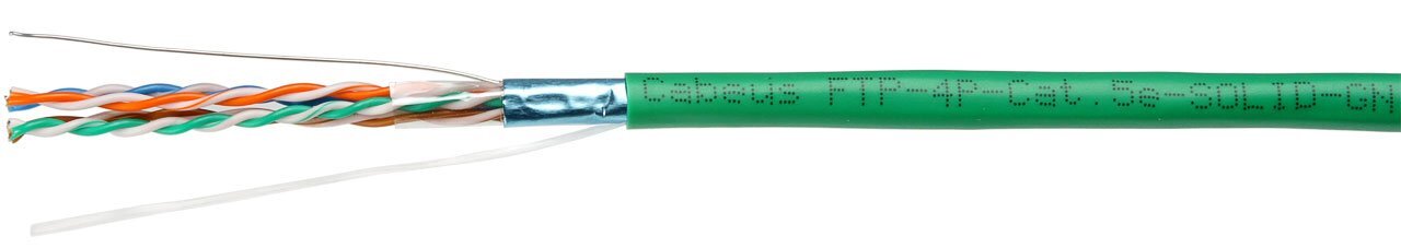 Кабель «витая пара» (LAN) для структурированных систем связи CABEUS FTP-4P-Cat.5e-SOLID-LSLTx-GN-100 (11267c-5)