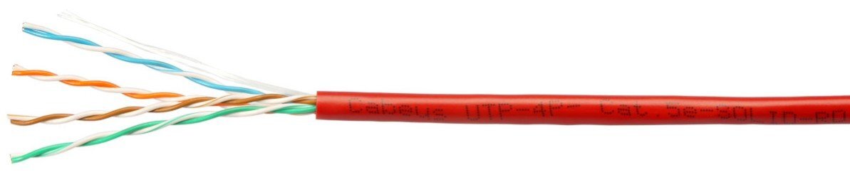 Кабель симметричный U/UTP неэкранированный, категория 5e, 4х2х0.50, однопроволочный, оболочка LSZH, нг(А)-HF, для внутренней прокладки, t-раб.-20…+60°C. 100 м. Цвет красный.