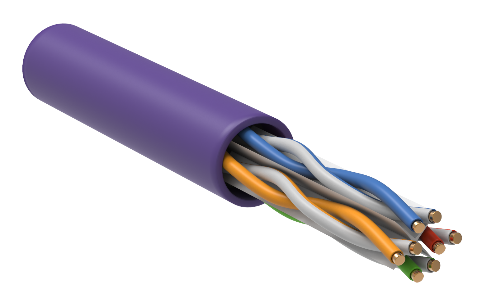 Кабель симметричный U/UTP неэкранированный, категория 6, 4х2х0.57 мм, 23AWG, для внутренней прокладки, однопроволочный, LSZH нг(A)-HF, D-внеш.7.5 мм, t-раб.-20…+60°C, фиолетовый. 305 м.