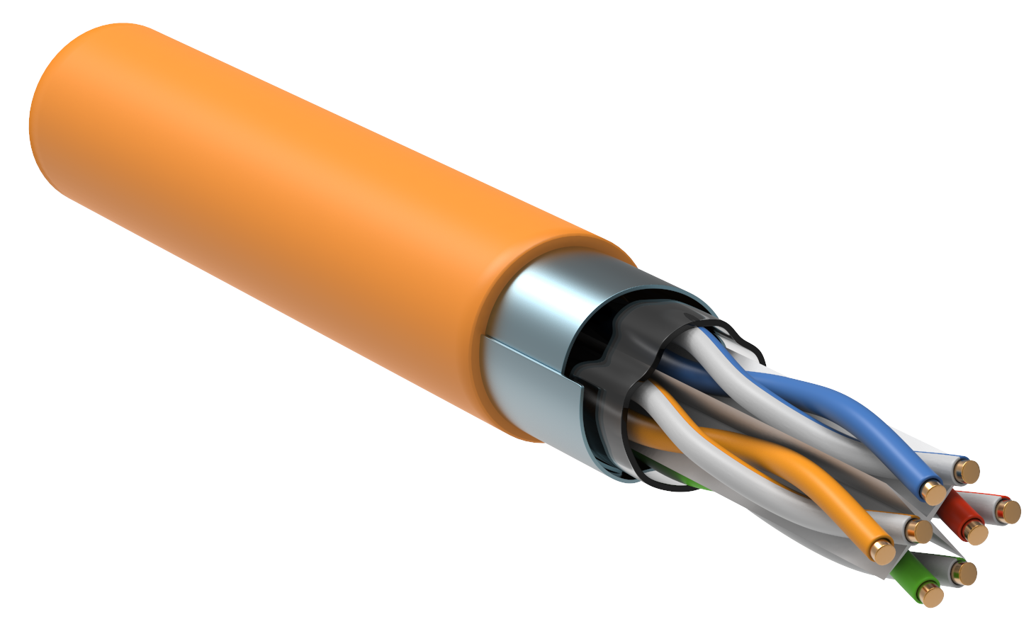 Кабель симметричный F/UTP в общем экране, категория 6, экранированный, 4х2х0.57 мм, 23AWG, для внутренней прокладки, однопроволочный, LSZH нг(A)-HF, D-внеш.7.5 мм, t-раб.-20…+60°C. 305 м. Цвет оранжевый.