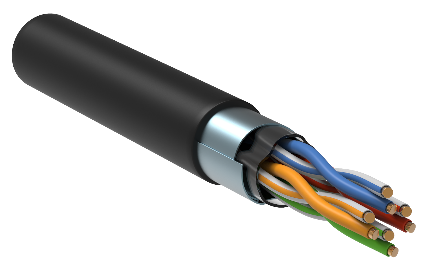 Кабель симметричный F/UTP в общем экране, категория 5, экранированный, 4х2х0.51, для внешней прокладки, однопроволочный, LDPE, D-внеш.6.3 мм, t-раб.-40…+60°C. 305 м. Цвет чёрный.