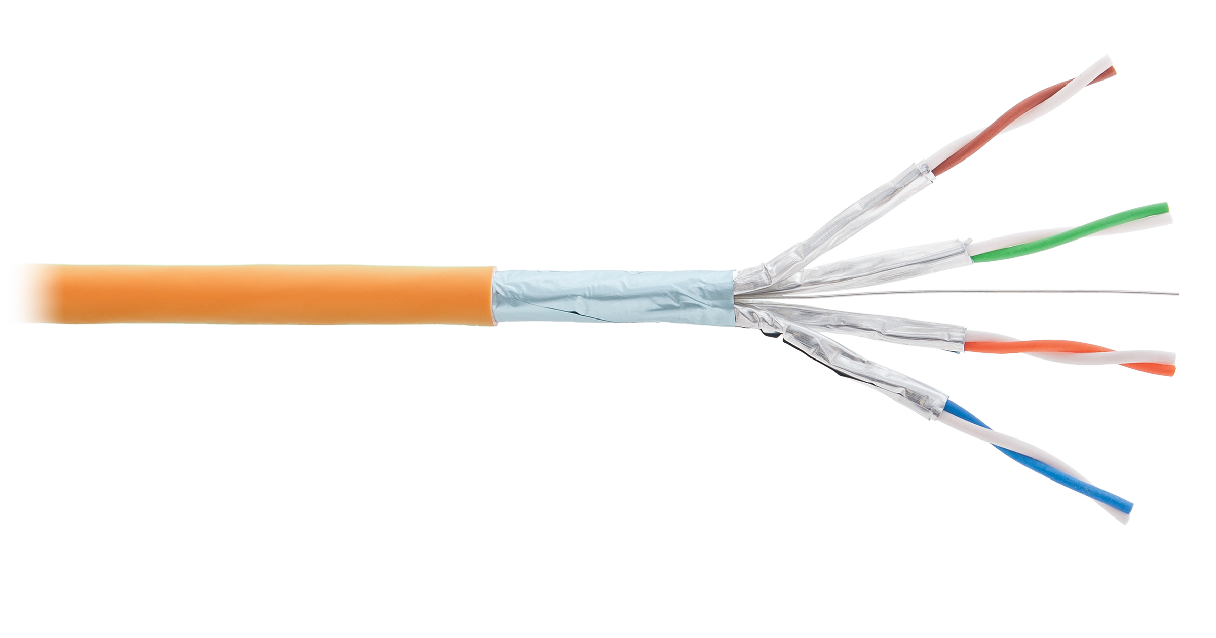 Кабель симметричный F/FTP в общем экране, категория 6а, 4х2х0.56, экранированный для внутренней прокладки, однопроволочный, LSZH нг(А)-HF, D-внеш.7.3 мм, t-раб.-20…+60°C. 500 м. Цвет оранжевый.