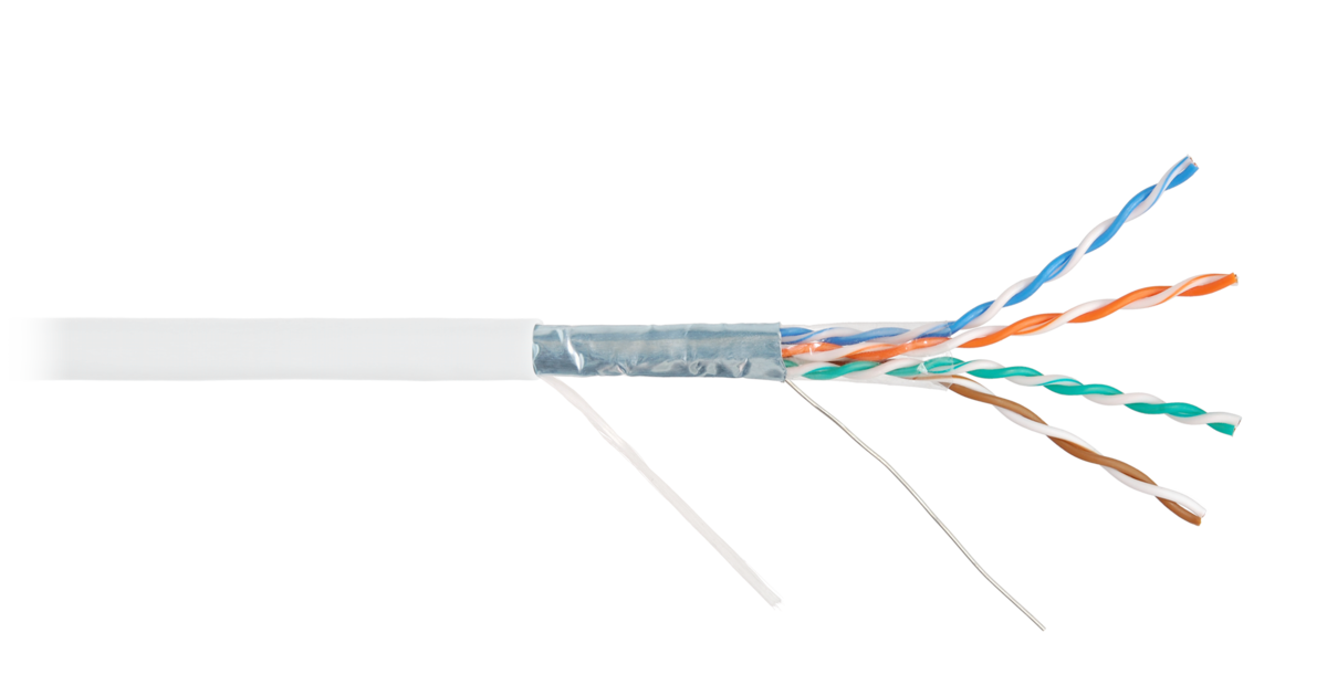 Кабель симметричный F/UTP в общем экране, категория 5e, 4х2х0.51, для внутренней прокладки, однопроволочный, LSZH нг(А)-HF, D-внеш.6.3 мм, t-раб.-20…+60°C. 305 м. Цвет белый.