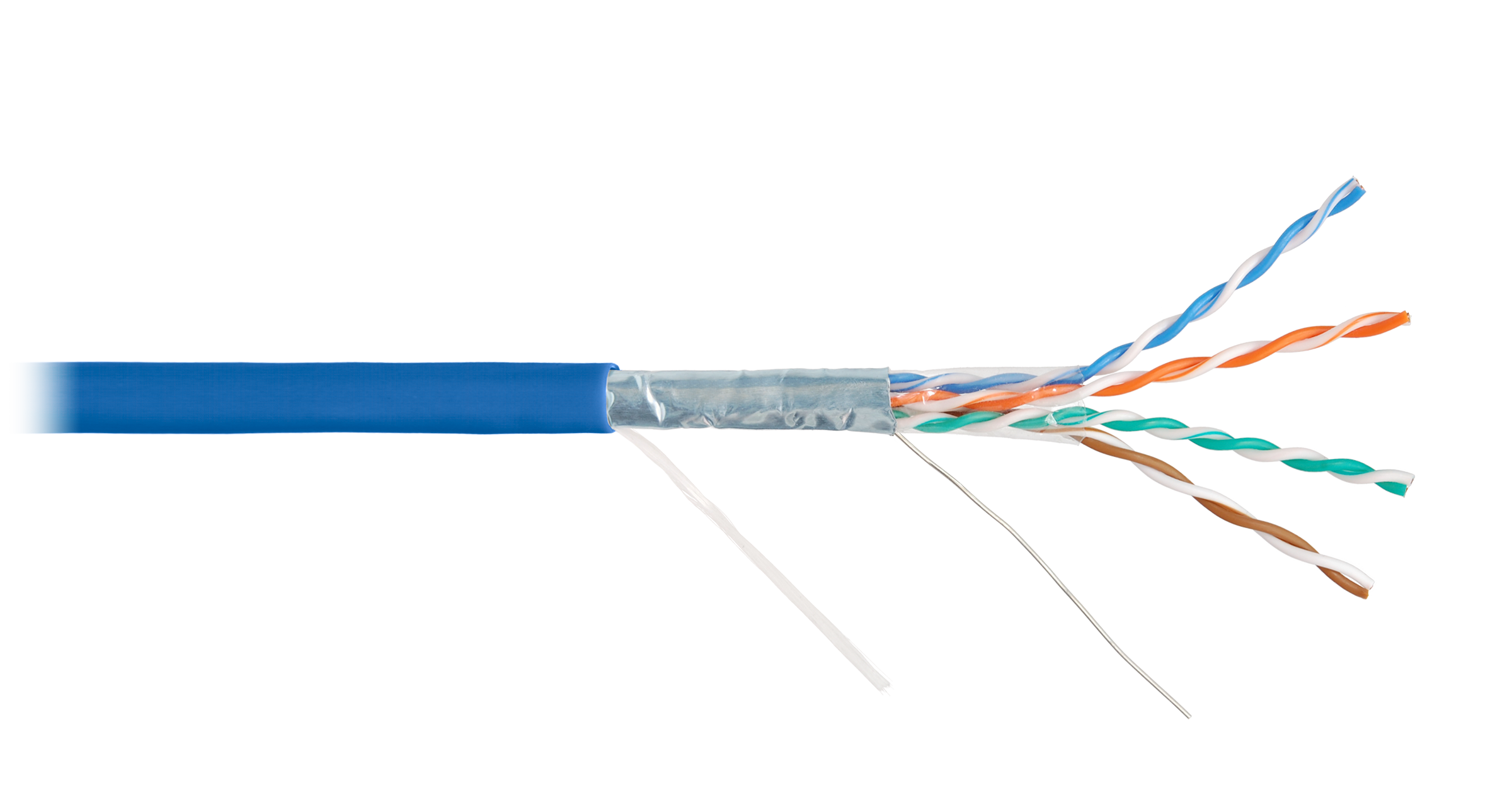 Кабель симметричный F/UTP в общем экране, категория 5e, 4х2х0.52, для внутренней прокладки, однопроволочный, LSZH нг(А)-HF, синий, D-внеш.6.4 мм, t-раб.-20…+60°C. 305 м.
