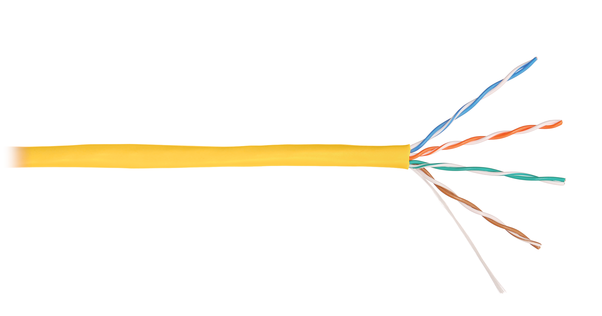 Кабель симметричный U/UTP неэкранированный, категория 5е, 4х2х0.52, для внутренней прокладки, одножильный, LSZH нг(А)-HF, внешний диаметр 5.2 мм, t-раб.-20…+60°C, 305 м. Цвет жёлтый.