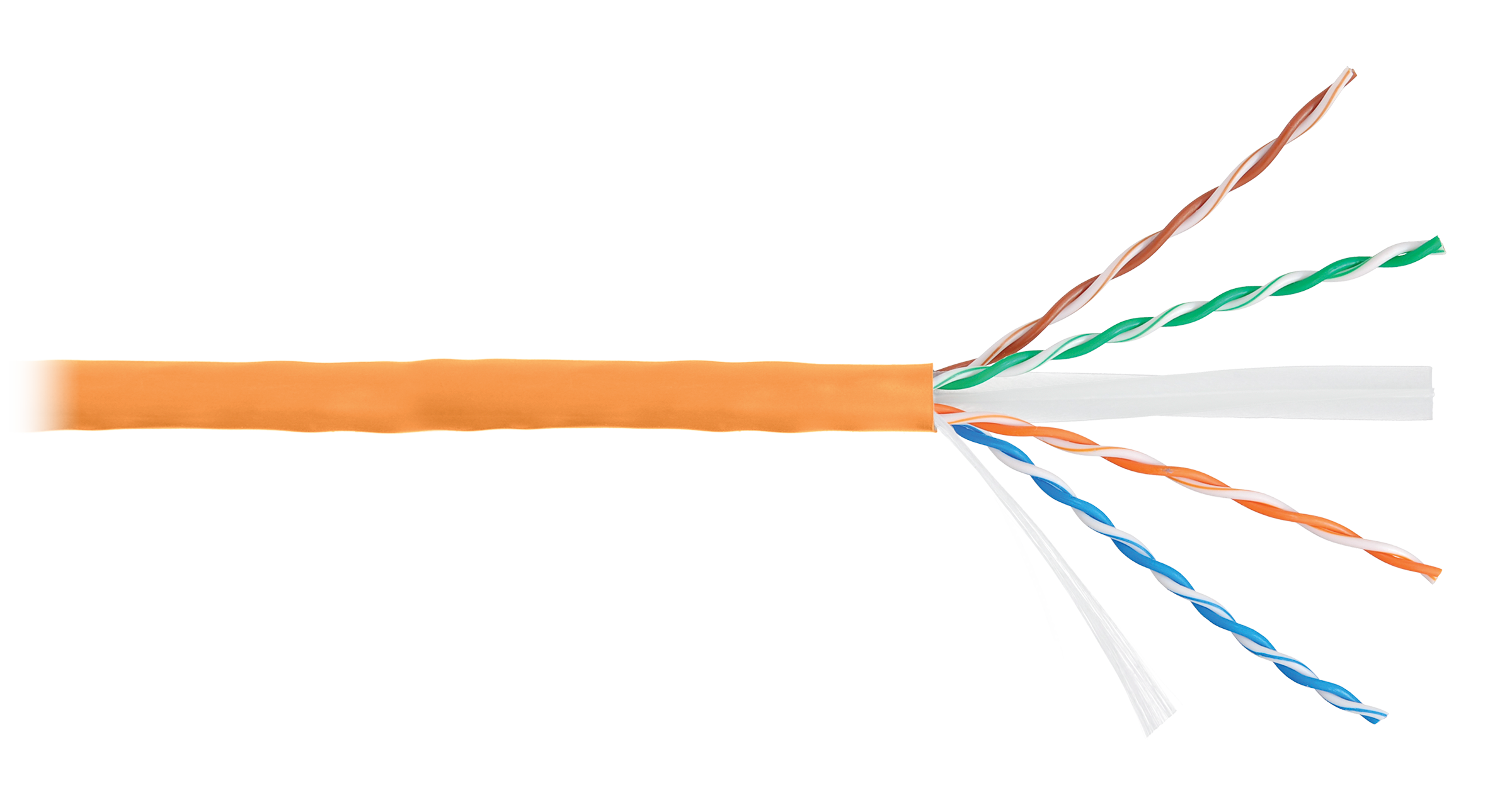 Кабель симметричный U/UTP неэкранированный, категория 6, 4х2х0.55, для внутренней прокладки, одножильный, LSZH нг(А)-HF, внешний диаметр 6.1 мм, t-раб.-20…+60°C, 305 м. Цвет оранжевый.