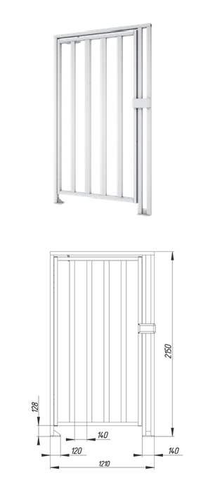 Калитка полноростовая К-10 правая(когда замок справа, доводчик слева, створка открывается в сторону доводчика) из окрашенной стали; ширина прохода 1020 мм; замок электромеханический Cisa 1A731-00-0; доводчик; -30...+40°C; 2150х1210х377 мм