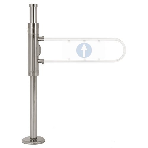 Особенностью калитки является ее универсальность; калитка снабжена двумя фиксирующими устройствами, которые позволяют в условиях эксплуатации выбрать любой режим работы калитки: «проход закрыт», односторонний - «дуга открыта влево» или «дуга открыта вправо», двухсторонний. Дуга прикреплена к вращающейся поворотной трубе, а стойка калитки неподвижна.