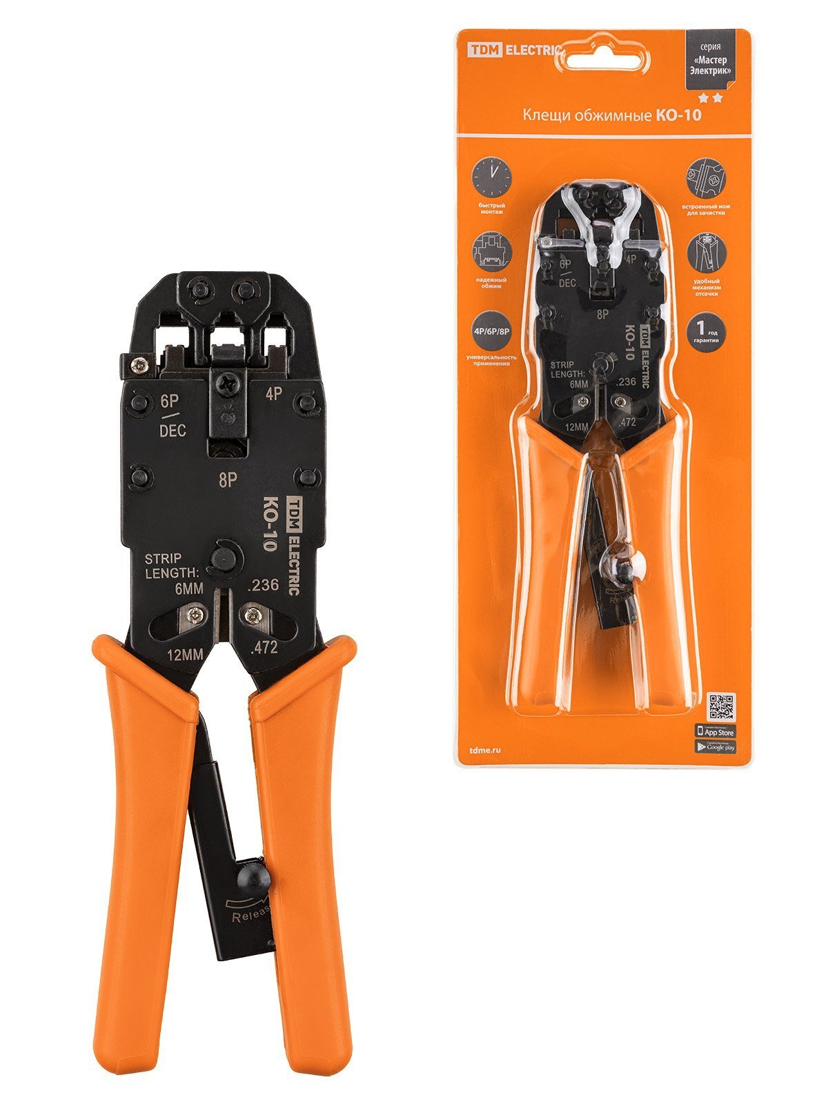 Клещи обжимные TDM ЕLECTRIC КО-10 обжим RJ-10/11/12/45 8P8C, 6P6C, 6P4C, 6P2C, 4P4C "МастерЭлектрик" TDM (SQ1001-0011)