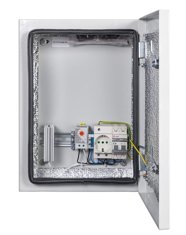 Шкаф климатический навесной с монтажной платой; 2 гермоввода (MG-25); внутренние размеры 277х377х120 мм (ШхВхГ); IP66, t-раб.-55…+50°С, 300х400х150 мм (ШхВхГ), 6.3 кг. Цвет серый. Комплектация: утеплитель из порилекса, замок 2 шт, ключ 1 шт, розетка 1 шт, автоматический выключатель 6А 1 шт, клемма для подключения оборудования 2 шт, клемма заземления 1 шт, термореле 1 шт, нагреватель 50 Вт 1 шт.