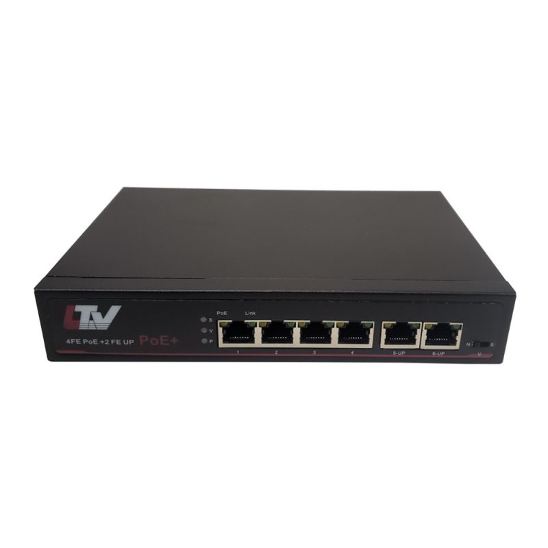 Сетевое оборудование, коммутатор, дальность передачи до 100 м (250 м в режиме CCTV), интерфейс передачи данных 4xRJ-45 (c PoE), 2xRJ-45 (uplink), cкорость передачи данных 4x100 или 4x10 Мб/с (CCTV), 2x100 Мб/с, рабочая температура -10…+55, грозозащита 3кВ, мощность 65 Вт, 60 Вт (порт 1), 30 Вт (порты 2-4), электропитание AC220V, 1А