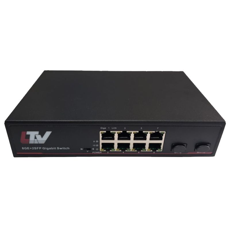 Сетевое оборудование, коммутатор, дальность передачи до 100 м (250 м в режиме CCTV), интерфейс передачи данных 8xRJ-45, 2xCombo RJ-45/SFP (uplink), cкорость передачи данных 8x1000 или 8x10 Мб/с (CCTV), 2x1000 Мб/с, рабочая температура -10…+55, грозозащита 3кВ, мощность -, электропитание AC220V, 1А