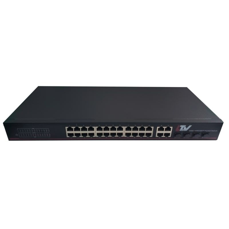 Сетевое оборудование, коммутатор, дальность передачи до 100 м (250 м в режиме CCTV), интерфейс передачи данных 24xRJ-45, 4xCombo RJ-45/SFP (uplink), cкорость передачи данных 24x1000 или 24x10 Мб/с (CCTV), 4x1000 Мб/с, рабочая температура -10…+55, грозозащита 3кВ, мощность -, электропитание AC220V, 1А