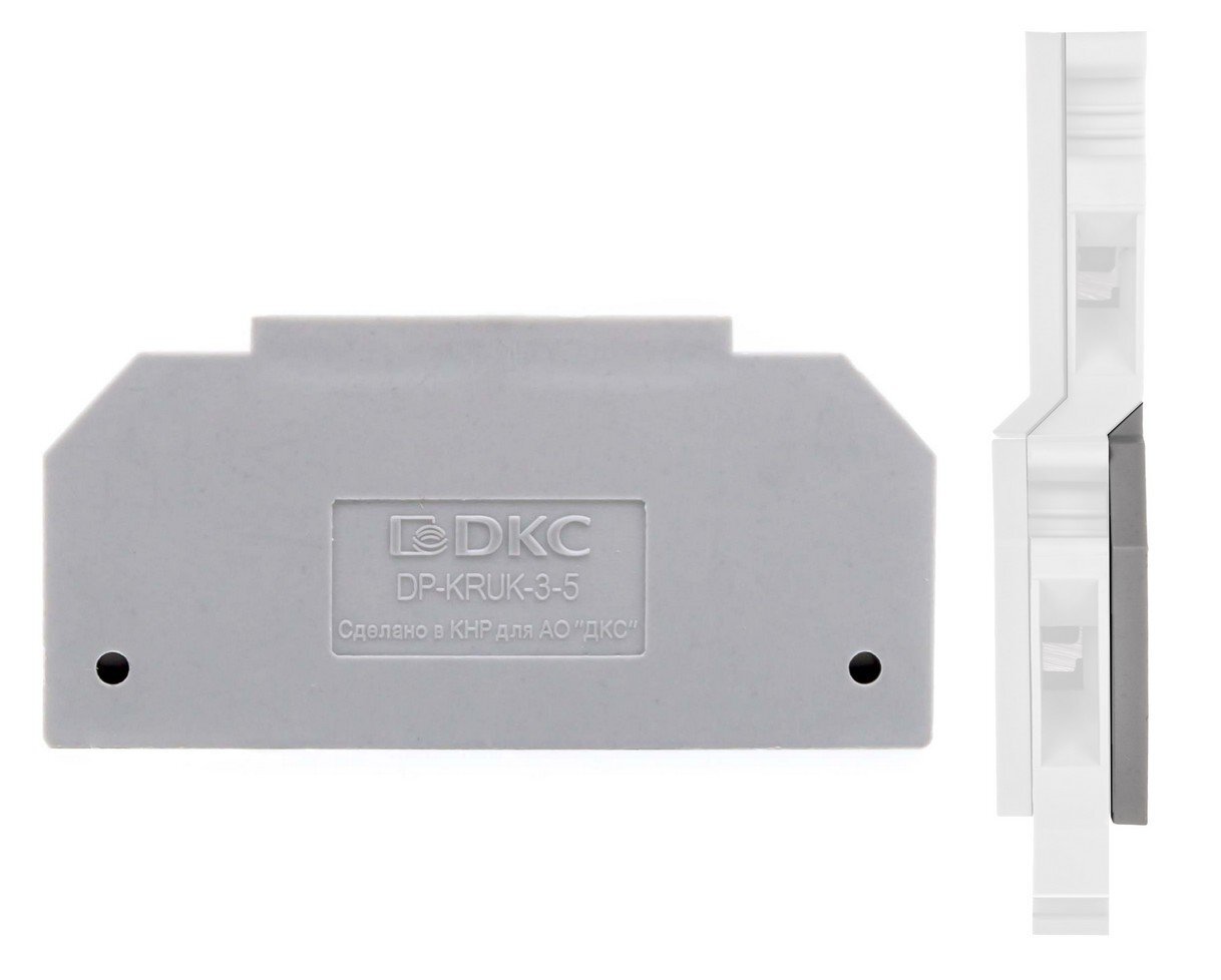 Компенсатор ширины предназначен для двухуровневой клеммы с винтовым зажимом KRUK-3-PV. Служит для получения плоской боковой стенки клеммы. Серый цвет, толщина 2,5 мм.