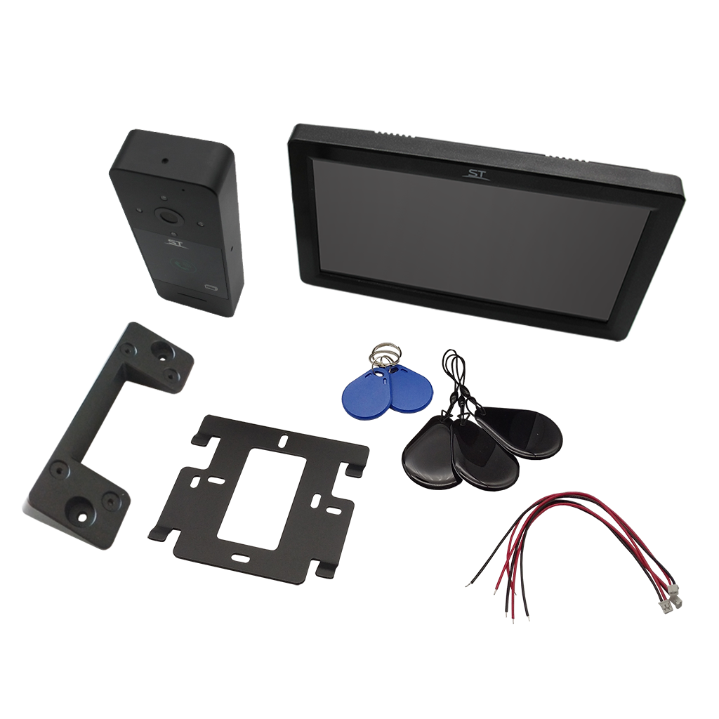 Комплект IP домофона:_x000D_ - IP монитор - 1шт;_x000D_ - IP вызывная панель с поворотным кронштейном - 1шт;_x000D_ - IC карта - 5 шт_x000D_ IP монитор, сенсорный экран IPS LCD 7"(1024х600); IP 2Мp, подключение: до 4 вызывных панелей, 4 камер (IP до 2 МП), 6 мониторов. Интерком. 100-240В АС; -10°С...+60°С; максимальный коммутируемые ток и напряжение для замка 30В/1A; корпус пластик; 174х107х18,5 мм. Цвет черный._x000D_ IP вызывная панель. Матрица 1/2.9''CMOS; IP 2Mp; угол обзора 110°(Г)/117°(В); ИК подсветка до 5м; объектив 1,9 мм. Встроенный контроллер до 200 карт, считыватель IC карт(13,56 мГц); 12±10% В DC; IP65; корпус алюминий+нержавеющая сталь; монтаж накладной; максимальный коммутируемые ток и напряжение для замка 30В/2A; -40°С...+60°С; 51х135х34 мм._x000D_