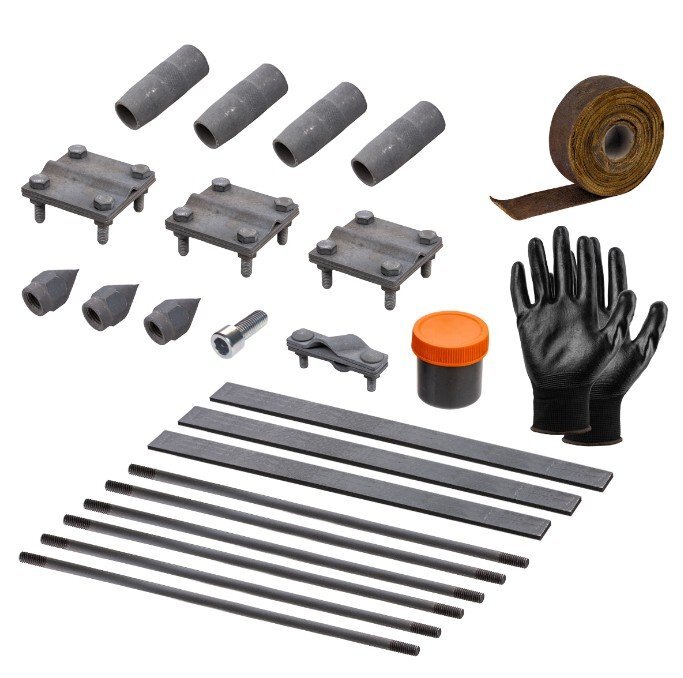 - зажим соединительный крестовой 4-х болтовой с контактной пластиной прут-прут O6-10 мм, термодиффузия - 3 шт._x000D_