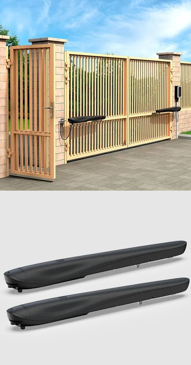 Привод ALUTECH Ambo AM5000KIT-N подходит для управления распашными воротами со створками весом до 500 кг и шириной до 5 м каждая.