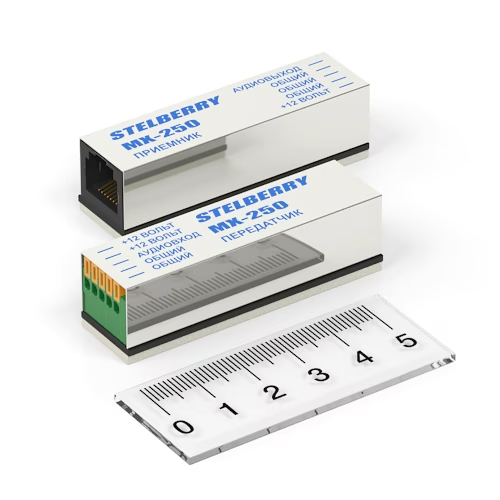 Комплект приёмника и передатчика предназначены для качественной питания микрофонов и передачи аудиосигнала по UTP кабелю до 1000 м, без влияния внешних электромагнитных помех в системах видеонаблюдения и аудиорегистрации, 12 В, 10мА, +10...+50°C, 19х55х19 мм.