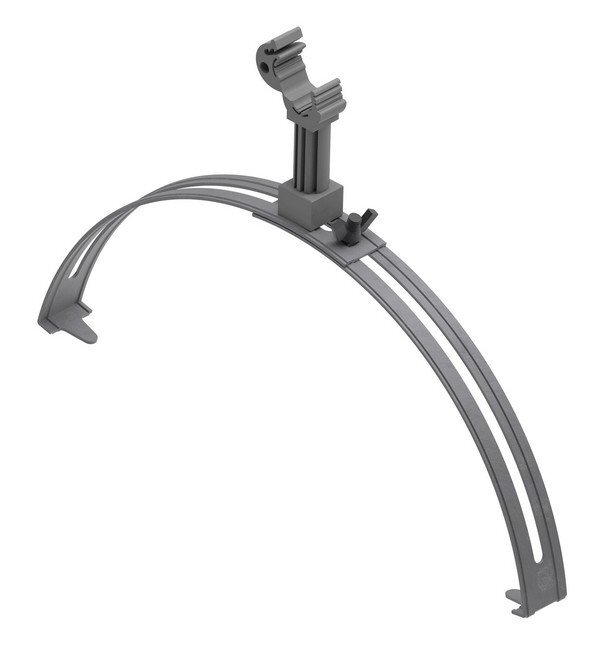 Регулируемый коньковый зажим с пластиковым держателем применяется для крепления молниеприемной сетки на круглом коньке кровли. Проводник фиксируется путем защелкивания. Диапазон зажима - 125-205 мм. Материал - горячеоцинкованная сталь.