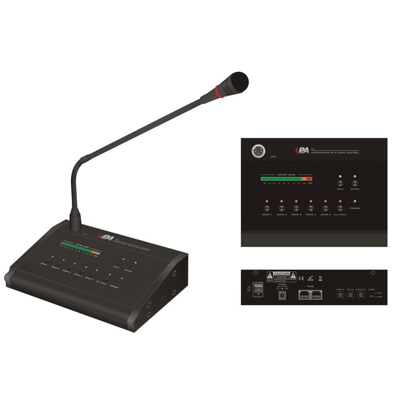 Микрофонная консоль с селектором на 5 зон предназначена для передачи голосового сообщения в одну из зон усилителя в системе оповещения и музыкальной трансляции на базе усилителей серии LPA-LX.