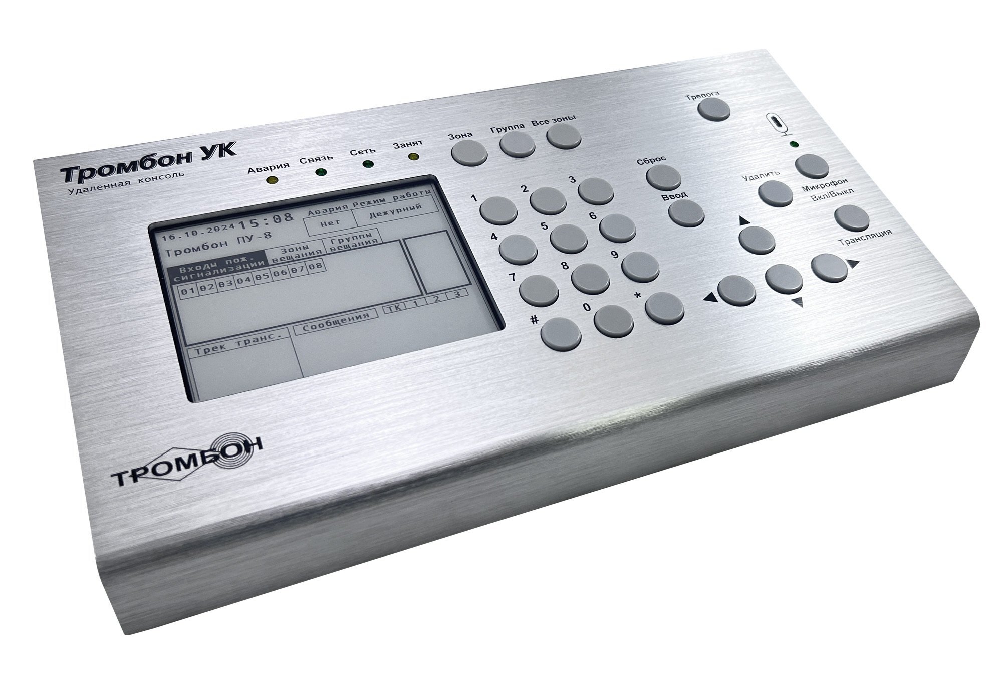 Удалённая микрофонная консоль Тромбон УК предназначена для эксплуатации в составе СОУЭ «Тромбон» совместно с приборами управления Тромбон ПУ и Тромбон ПУ-М.