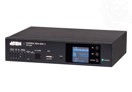 Контроллер аппаратных средств, интерфейсы: 1xRS232/422/485 BiDi; 1xRS232 BiDi; 2xIR/RS232; 4x релейных канала; 2xIO канала; 2x RJ45; 1x для подключения питания DC12V; 1xUSB тип-A для загрузки профиля, AC 110...240 В, 6.5 Вт; 0...+50°C, 200х164х44 мм.