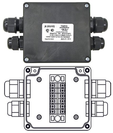 Имеет шесть парных клеммных соединений. Степень защиты оболочки IP65.
