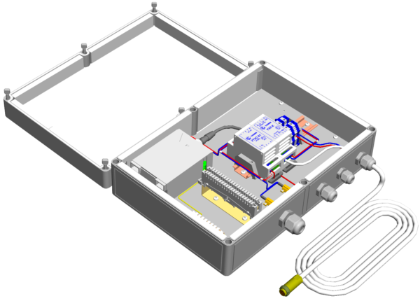 Коробка монтажная герметичная с обогревом предназначена для установки в ней устройств грозозащиты цепей питания и сигнальных цепей (шлейфов) «Спектрон Гроза», и поддержания заданного температурного режима при эксплуатации этого оборудования. Оборудована устройством тепловой защиты и сигнализации УТЗС-01, 24В ±15% DC, 12Вт; IP66, -50°...+50°С, 361х288х111 мм.