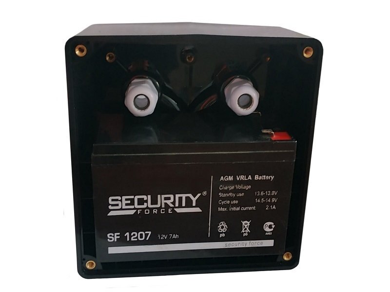 Монтажная коробка накладная усиленная с 2-мя гермовводом ПКВ20х1,5 и 2-мя отверстиями с тыльной стороны для подключении кабеля D 6-14 мм, предназначена для наружной установки крупногабаритных камер видеонаблюдения, с возможностью установки платы питания и АКБ 12В 7А·ч; пластиковый корпус; масса 0.75кг; цвет черный, -70...+70°C; IP 66/67; 180х180х97мм