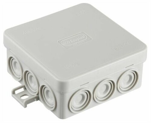 Коробка монтажная, огнестойкая, без галогена Экопласт Коробка JBL085 85х85х38, 12 вых., 8P (0,15...2,5мм?) серая (43355HF-GR)