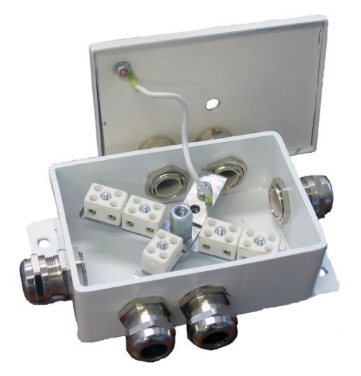 Корпус коробки целиком изготовлен из стали 2,5-3 мм. Имеет двойную защиту от коррозии ( гальваническое покрытие и покраска). Крышка прижимается к корпусу через силиконовую прокладку. Винт крепления крышки снабжен уплотняющей тарельчатой шайбой с фторопластовым покрытием. Внутри корпуса коробки установлены керамические клеммные колодки, обеспечивающие соединение "под винт", и клемма заземления. В боковых стенках устанавливаются металлические кабельные вводы. Крепление коробки к элементам конструкций рекомендуется осуществлять на приварные пластины с применением гаек и винтов или с помощью саморезов и металлических дюбелей.