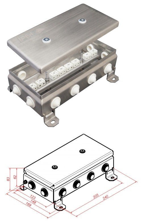 Количество кабельных вводов 12 | Габаритные размеры мм 123х240х60 |