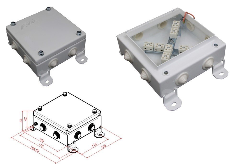 Материал Оцинкованная сталь | Габаритные размеры мм 150х150х60 |