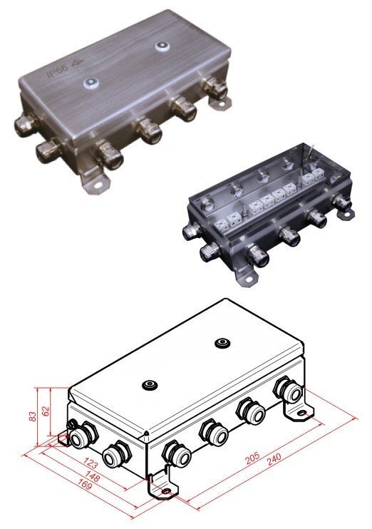 Количество кабельных вводов 12 | Габаритные размеры мм 123х240х60 |