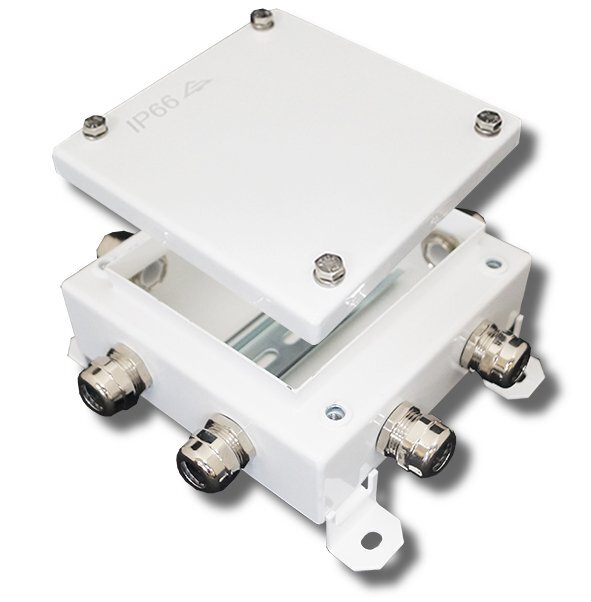 Корпус коробки имеет двойную защиту от коррозии (гальваническое покрытие и покраска). Крышка прижимается к корпусу через силиконовую прокладку. Винт крепления крышки снабжен уплотняющей тарельчатой шайбой с фторопластовым покрытием. Внутри корпуса коробки установлены керамические клеммные колодки, обеспечивающие соединение "под винт", и клемма заземления «РЕ». В боковых стенках устанавливаются втулки уплотнительные IP54 мембранного типа. Крепление коробки к элементам конструкций рекомендуется осуществлять с применением винтов или саморезов на металлические дюбели.